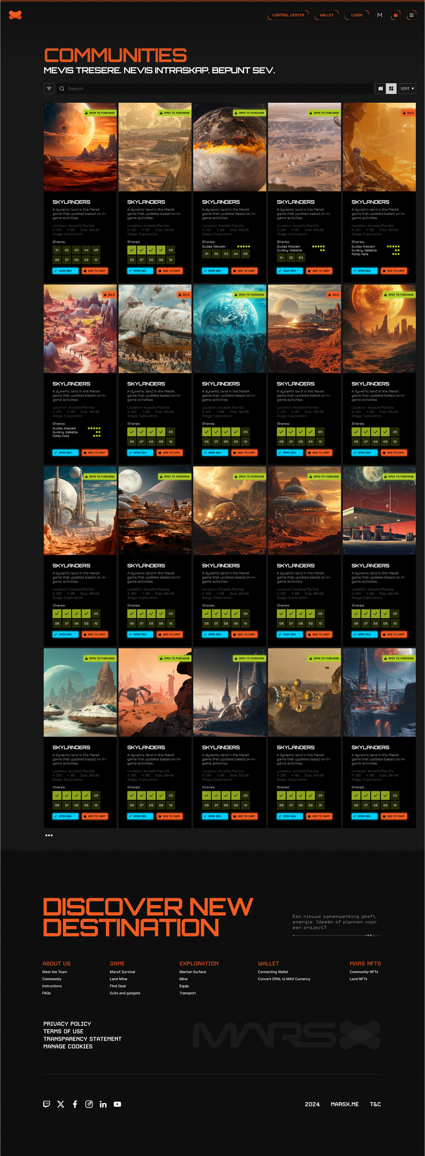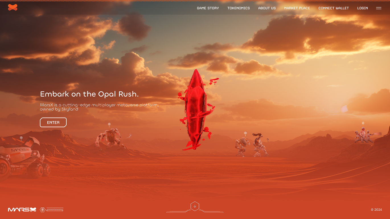 A crypto based game project name MARSX. A futuristic mobile based game website to play and buy NFT based Land and communities on the red planet of Mars.